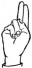 На ћирилици написано ГАВРИЛО МЕЋАВА састоји се из 13 слова [?]. Исписано ћириличном једноручном азбуком за глувонеме: